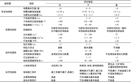 干熱巖勘查開發(fā)場地選址評價指標體系注:g為重力加速度。