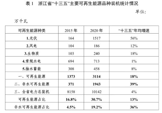 "十三五"以來(lái),我省高度重視可再生能源發(fā)展,并取得顯著成績(jī)。截至 2020 年底,全省可再生能源裝機(jī)容量達(dá)到 3114 萬(wàn)千瓦,其中光伏1517萬(wàn)千瓦(分布式 1070 萬(wàn)千瓦),常規(guī)水電 713 萬(wàn)千瓦,抽水蓄能 458萬(wàn)千瓦,生物質(zhì)發(fā)電 240萬(wàn)千瓦(垃圾發(fā)電 210 萬(wàn)千瓦),風(fēng)電 186 萬(wàn)千瓦(海上風(fēng)電 45 萬(wàn)千瓦),可再生能源裝機(jī)占比達(dá)到 30.7%。