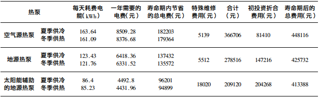 調(diào)查表明,在整個(gè)壽命期之內(nèi),一般使用者都會(huì)更換一次壓縮機(jī),按照研究的數(shù)據(jù),為了提高整個(gè)系統(tǒng)的效率,壓縮機(jī)大多在壽命期的第14年更換,使用更高效昂貴的壓縮機(jī)。地大熱能地源熱泵事業(yè)部專(zhuān)家認(rèn)為考慮到本文研究的熱泵系統(tǒng)冷量接近,認(rèn)為更換壓縮機(jī)對(duì)于費(fèi)用比較不產(chǎn)生影響。