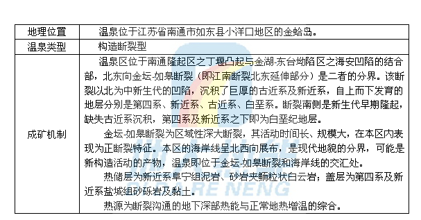 江蘇省如東縣金蛤島溫泉成礦機(jī)制![]() ![]() 江蘇省如東縣金蛤島溫泉區(qū)域地質(zhì)圖 |