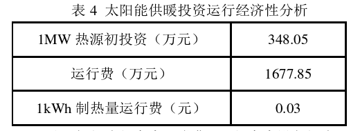 根據(jù)《太陽(yáng)能供熱供暖工程技術(shù)規(guī)范》 (GB50495-2019),在寒冷地區(qū)太陽(yáng)能供暖系統(tǒng)須采用間接供暖系統(tǒng)。太陽(yáng)能間接供暖系統(tǒng)用于集中供暖熱源投資運(yùn)行經(jīng)濟(jì)性分析詳見表4: