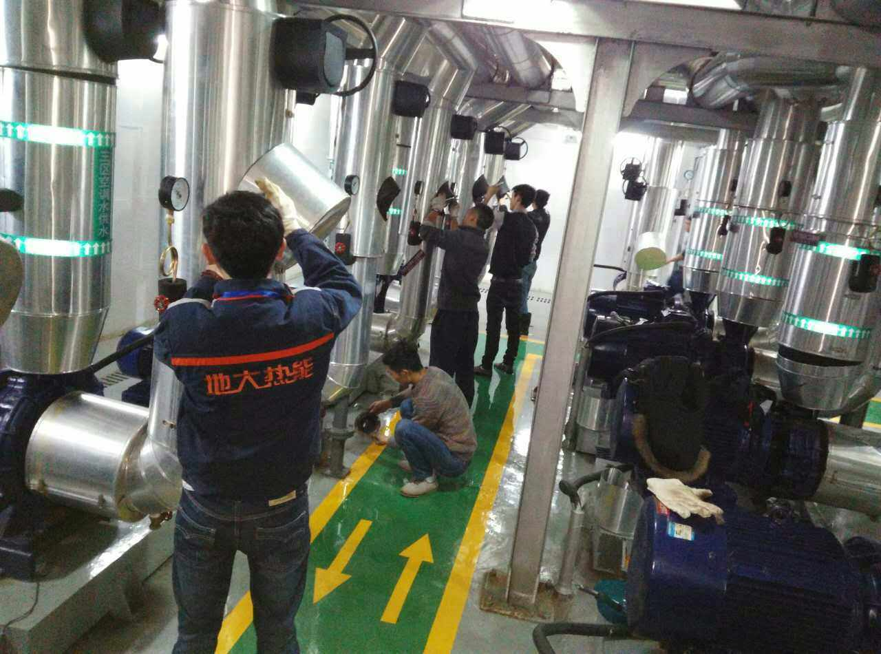 湖北地大熱能地源熱泵運維團(tuán)隊由20名專家、技術(shù)人員組成,技術(shù)、施工項目經(jīng)驗豐富,在了解貴陽財大花溪校區(qū)運行了三年的地源熱泵系統(tǒng)所出現(xiàn)的問題后,經(jīng)過重新的地?zé)峥辈?/a>、評估,分析地下熱量、冷量傳輸與地上熱泵系統(tǒng)的各個環(huán)節(jié),找到問題癥結(jié),進(jìn)行專業(yè)維修,并擬定長期維護(hù)計劃,改善項目系統(tǒng)的運行環(huán)境,提高供暖與制冷的效果。